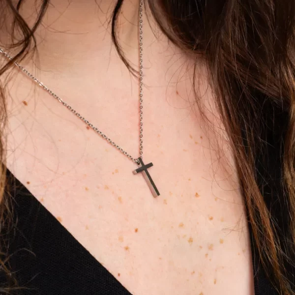 Collar de cadena finita con un dije pasante de acero con forma de cruz. ¡Es súper delicado y canchero! Su sencillez y elegancia hacen que sea el accesorio perfecto para llevar todos los días