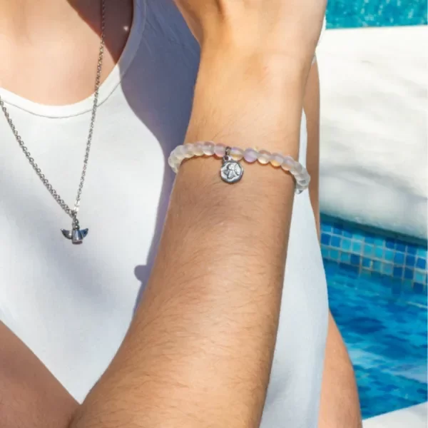 Esta pulsera elástica combina piedra de la luna con un dije del ángel Rafael, brindándote un toque de estilo y espiritualidad. 🌟 Perfecta para acompañarte en cualquier momento del día. Viene presentada en una caja con un hermoso sticker, lista para regalar o disfrutar vos mismo.