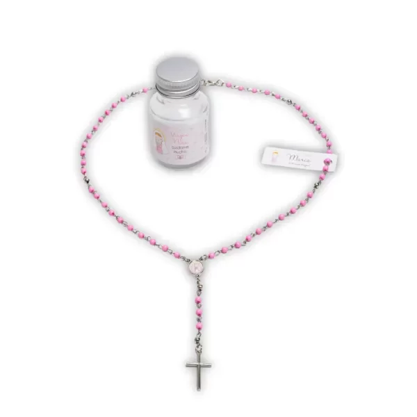 Rosario de cuentas de acrílico y cruz Xfis con distintos diseños, ideal para regalar a niños y niñas como 1° rosario🎁.