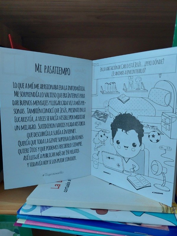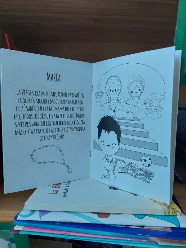 Mediante alegres ilustraciones para pintar y jugar, vamos a conocer la historia de Carlo, desde su deseo de recibir a Jesús y cómo crecía, junto a sus amigos, en el amor a Dios y a la virgen María.
