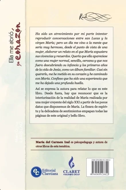 Así se expresa la autora para relatar lo que es este libro. Desde fuera, hay que reconocer que es la interiorización de la realidad de María realizada por una mujer creyente del siglo XXI a partir de los pocos datos que disponemos de María. La finura de espíritu y la delicadeza de sentimientos empapan todas las páginas de este original y bello libro.