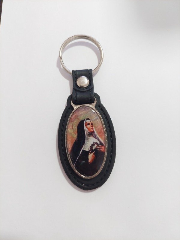 Llavero símil cuero ovalado con imagen de Santa Rita