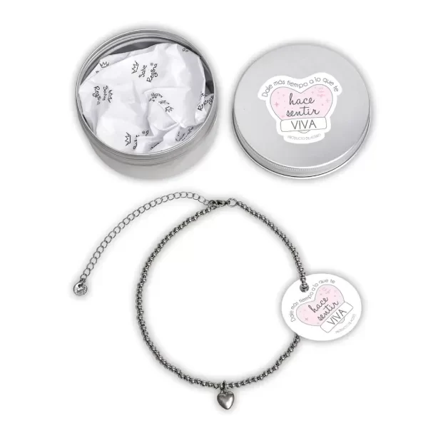 Este collar con cuentas de acero y un delicado dije de corazón en el centro está pensado para ser el accesorio perfecto para usar diariamente. Su diseño versátil lo convierte en el complemento ideal para cada uno de tus looks, sumando un toque de elegancia y sencillez. Además, es el regalo ideal, ya que viene presentado en una hermosa lata reutilizable con un sticker original y único. Combinalo con la pulsera clementina, un dúo que no puede fallar ;)