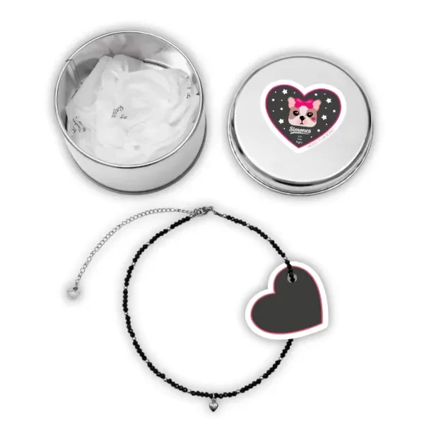 Collar de acero quirúrgico con cristales en tonos negros y un tierno dije de corazón en el centro.
