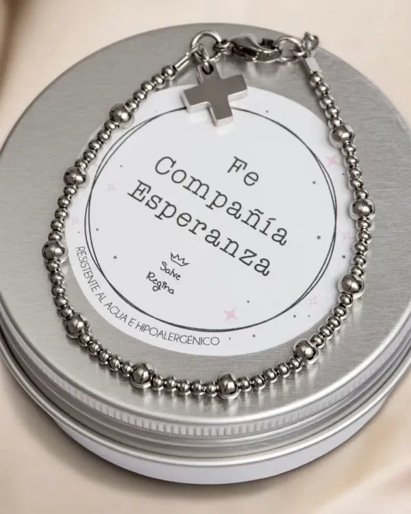 Como bien dice su presentación, esta pulsera representa tres pilares fundamentales: Fe, Compañía y Esperanza.