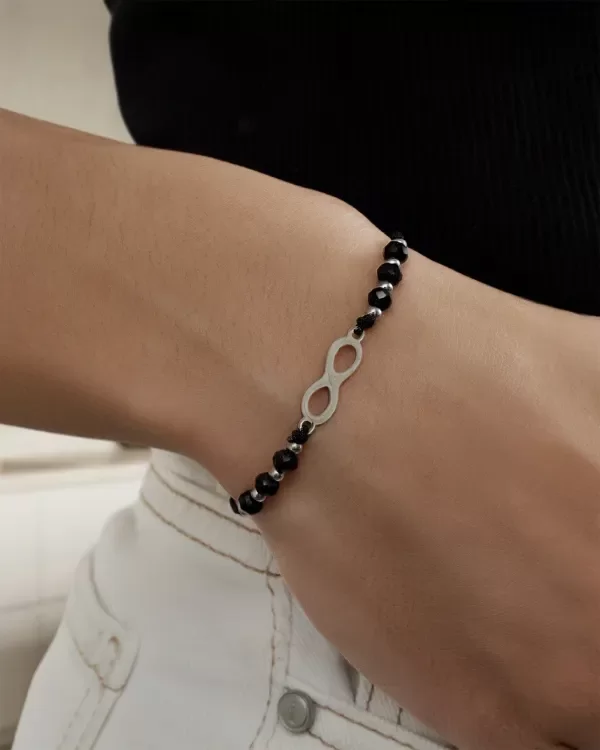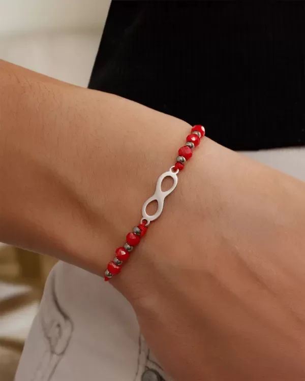 ✨ Pulsera de hilo con cristales brillantes y un dije de acero en forma de infinito ♾️. Este accesorio es ideal para complementar tus looks diarios, simbolizando la belleza y la permanencia de esos momentos especiales 💖.Además, su diseño regulable asegura que se ajuste cómodamente a cualquier muñeca.