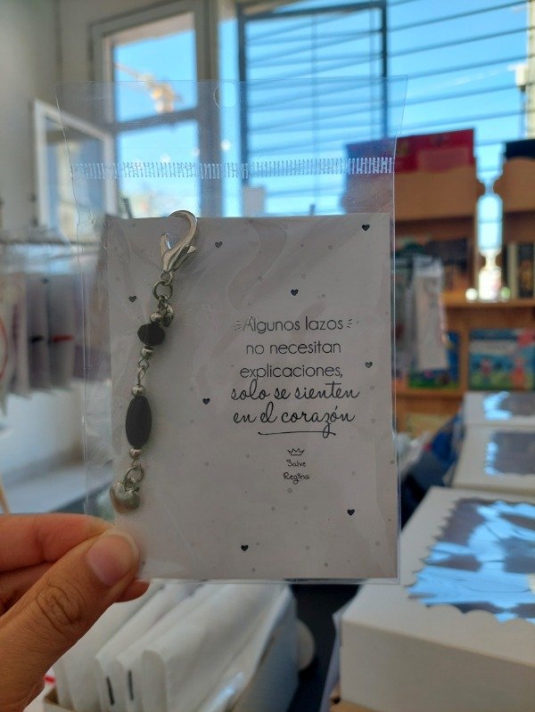Un regalo con alma💕. Este charm fue pensado para esa amiga del corazón, la que siempre está. Hecho con cuentas de vidrio en distintas formas y tamaños, cada uno es distinto y especial, como su amistad. Es ideal para sumar a los cierres de carteras o mochilas, o como llaverito. Un detalle que no falla: viene presentado en una bolsita y una tarjeta hermosa que incluye espacio para que le escribas unas palabras que lleguen directo al corazón 💌